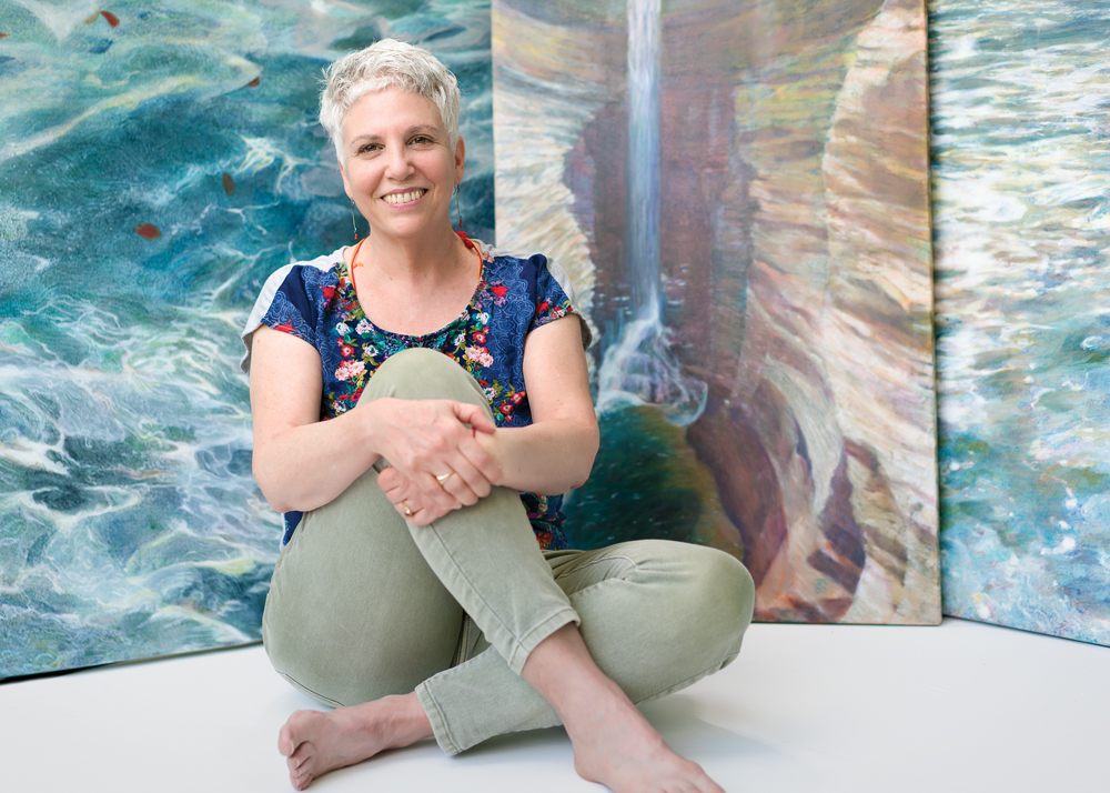 Adams returned to her painting roots, focusing on water because the paintings could be both representational and abstract. “Water changes things,” she notes. “Reflections, sparkling water, the light going through. You can hardly believe it exists in reality, it’s so magical.”