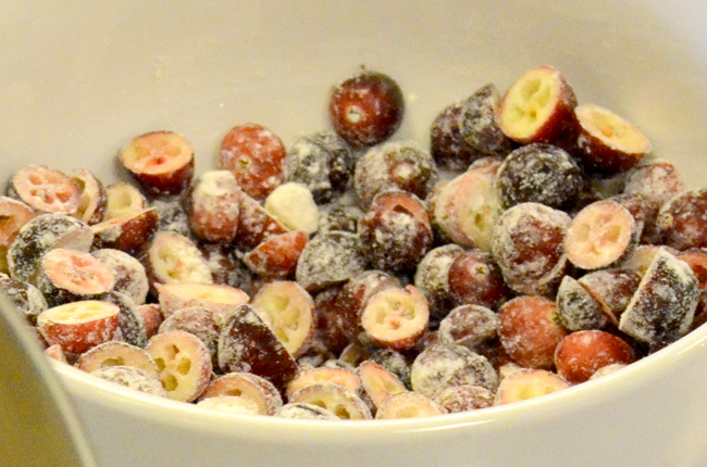 5) Mix a small amount of the flour mixture with the cranberries.