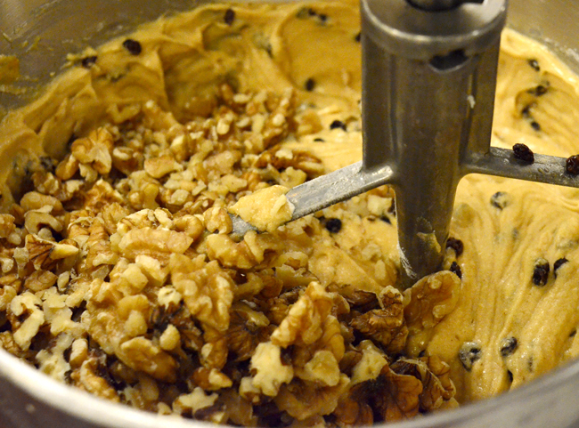 6) Stir in the walnuts and brandy-soaked currants to the mixture.