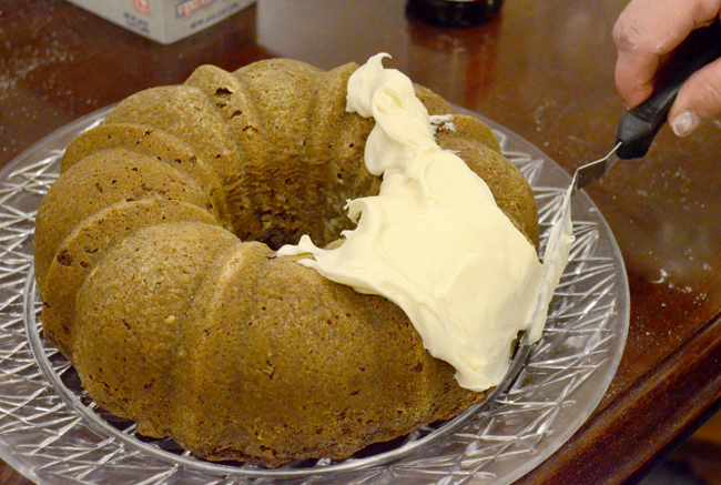 Special note: Spray the bundt pan with Pam and dust it with flour before filling it with the cake batter. This recipe will stick—even when using a nonstick pan.