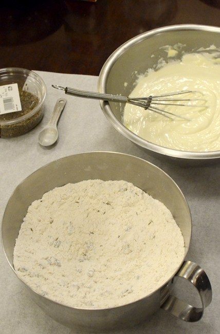 3) Fold the sour cream mixture into the dry ingredients.